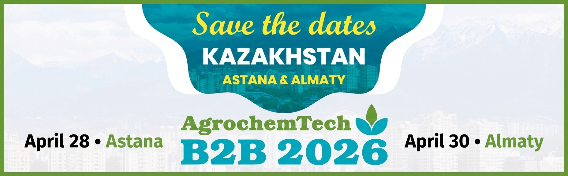 AgrochemTech B2B 2026 is a leading international B2B agrochemical and agritech exhibition and networking event taking place in Kazakhstan, hosted across two major cities — Astana on April 28, 2026, and Almaty on April 30, 2026.